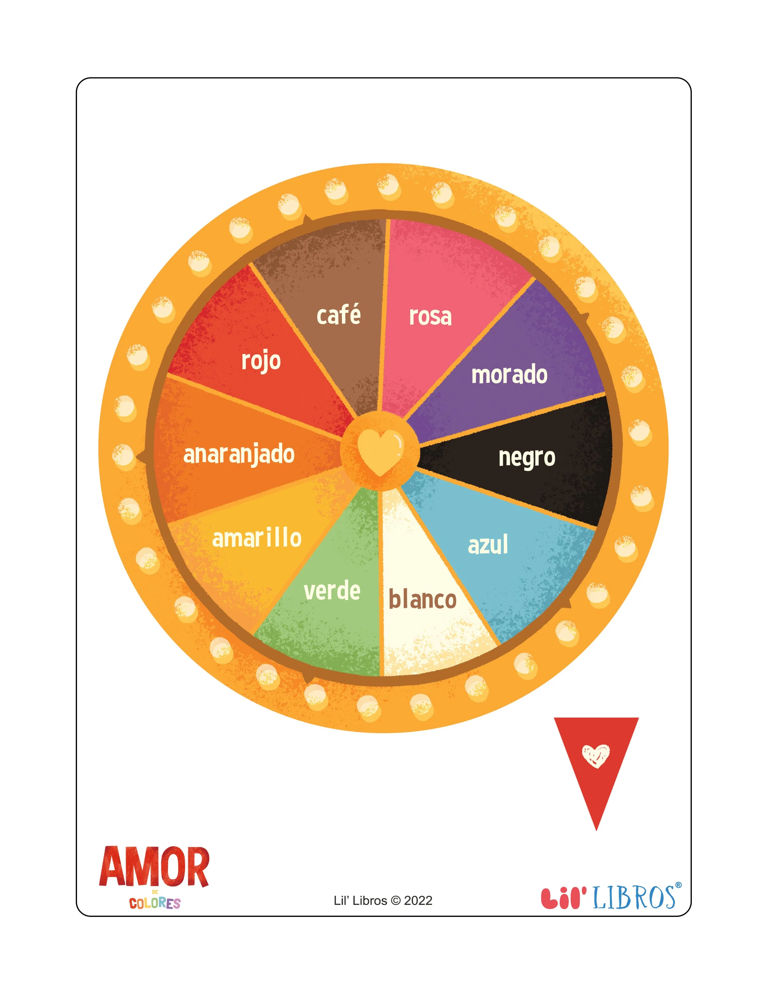 Red, blue, green, or purple, spin the wheel and find out what color you get. Create this spinning wheel and play “guess the color” with your little one. Inspired by Amor de colores, this activity can help your children learn the colors of the rainbow.